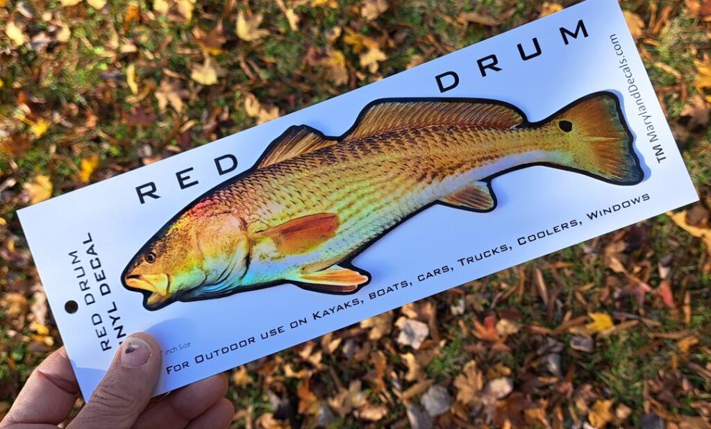 Red Drum fish Sticker Decal 5.9″ inch wide only $8.00 with FREE SHIPPING!